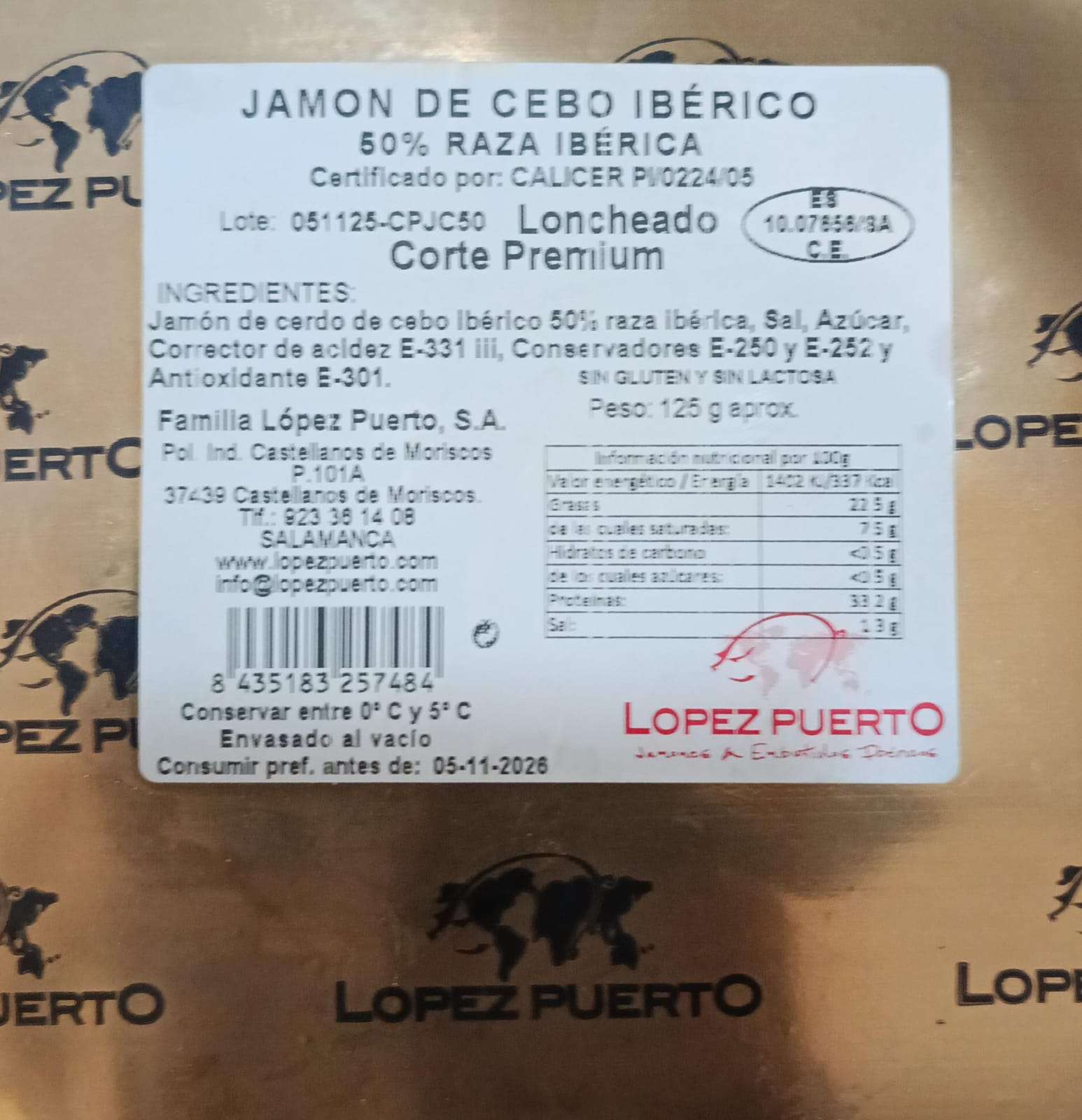 Jamón cebo 50% ibérico envasado al vacío 125gr